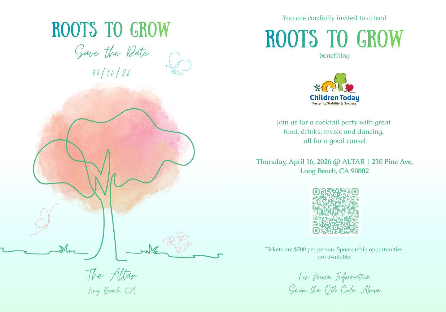 Roots to Grow is Children Today’s annual fundraising event and a chance to celebrate all we’ve accomplished together in supporting trauma-informed care and providing services for the young children and families we serve who experience homelessness and maltreatment in our community.