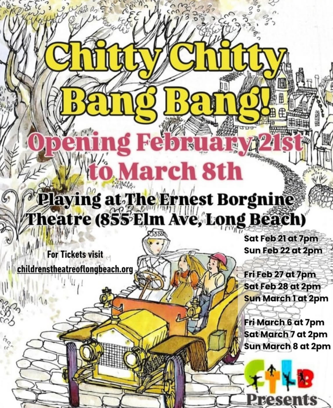 Get ready to be taken for a ride of the heart in this touching 1910 turn of the century story of an eccentric inventor named Caractacus Potts, his family, and a woman named Truly Scrumptious who together discover what it means to be ‘Chitty Chitty Bang Bang!’ Playing February 21st-March 8th at the Borgnine Theatre in Long Beach. For Tickets and more information visit @childrens_theatre_lb