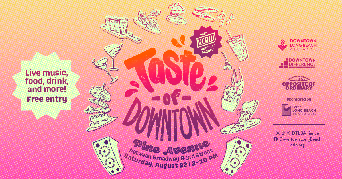 Taste of Downtown, now in its 17th year, is a signature culinary and cultural celebration presented by the Downtown Long Beach Alliance, bringing together top local restaurants, live music and DJs, and a vibrant street-festival atmosphere in the heart of Downtown Long Beach. Guests can enjoy bite-size food samples alongside beer, wine, and craft cocktails from the area’s talented community of chefs, brewers, and mixologists, as well as interactive activities and experiences that showcase the unique character and creativity of Downtown Long Beach—all coming together for an unforgettable experience of flavor, culture, and community.