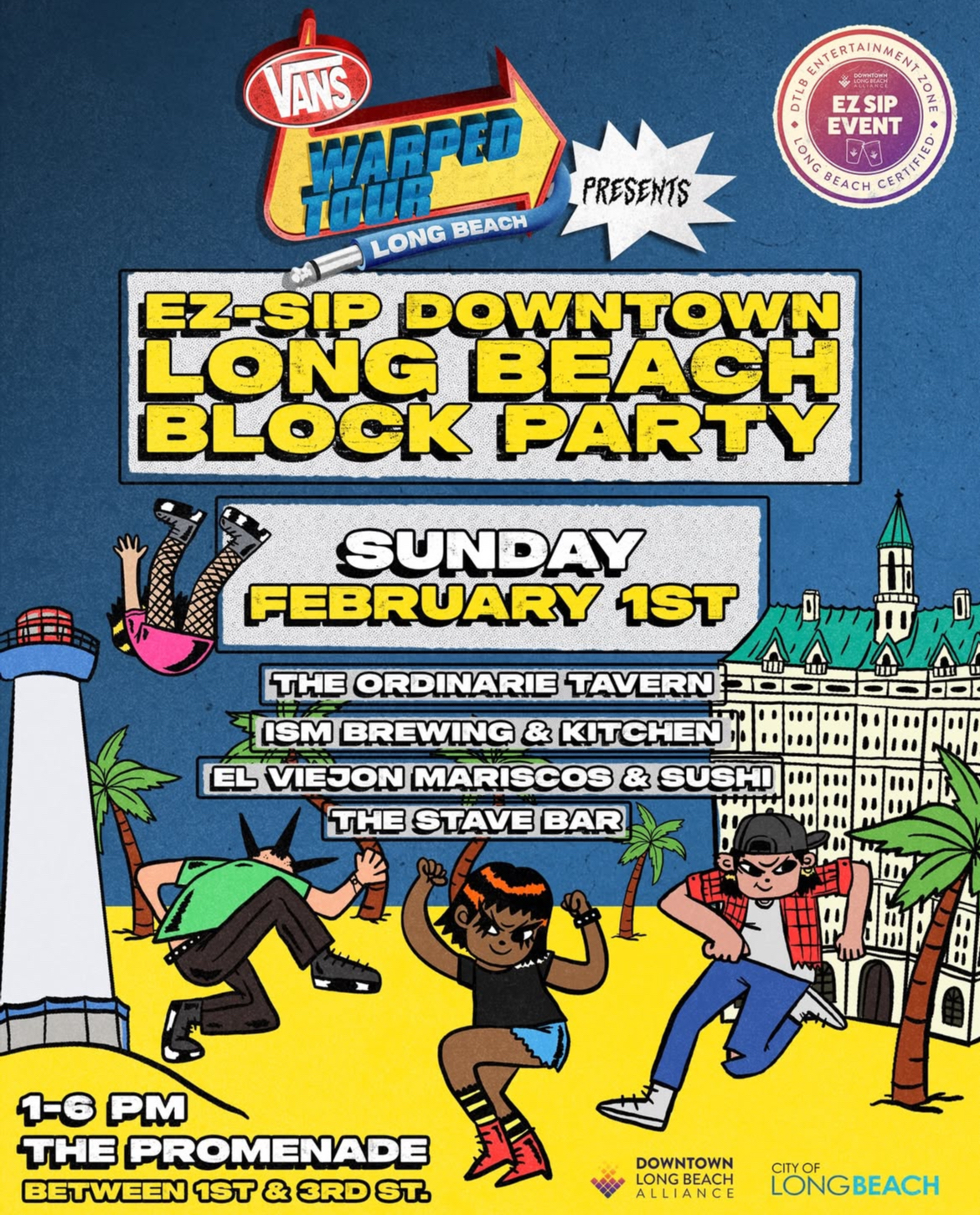 Pull up for a block party Sunday, Feb. 1 from 1 to 6 PM for good vibes and a great cause! Make sure you're following @vanswarpedtour and @dtlballiance on Instagram so you don't miss event updates! **JUST ADDED** See the bottom of this page for an event-day site map! Sip Your Way Downtown, Promenade... |